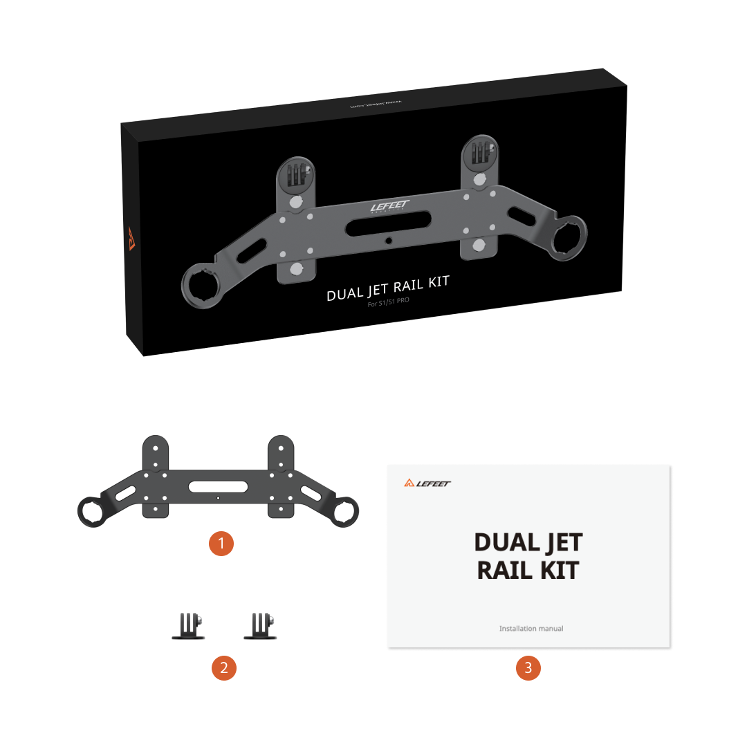 Das Dual Rail Kit ist darauf ausgelegt, zwei LEFEET S1 PRO Einheiten sicher zu halten. Es bietet eine bequeme und stabile Montagemöglichkeit für Benutzer, die mehrere S1 PRO Einheiten für verschiedene Aktivitäten benötigen.