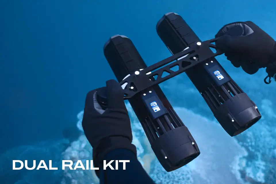 The P1 Dual Set includes two sets of P1 water scooters and one dual rail kit. This setup allows you to use the water scooters individually as two single setups or combine them as a dual setup, providing flexibility for your needs.