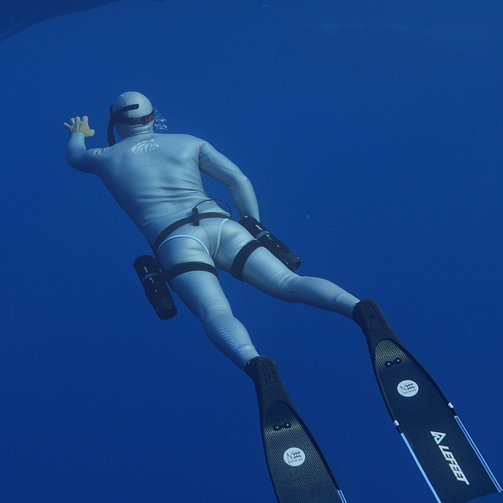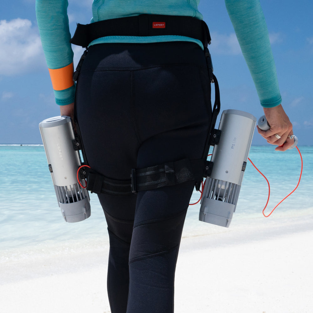 该装备专为双台LEFEET P1设备设计,可稳固附着于双腿,实现人体工学贴合。通过创新免手持设计,彻底解放双手,让您在潜水过程中畅享无拘无束的灵活操控与沉浸式水下探索体验。